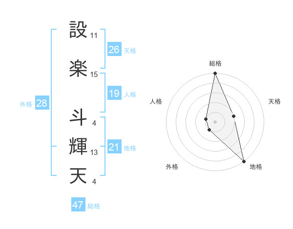 設楽 斗輝天さんの総格は47画の5点!