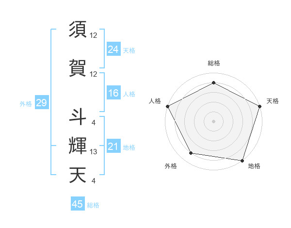 須賀 斗輝天さんを姓名の画数から五運を鑑定