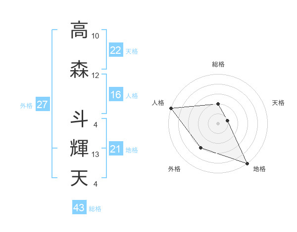 高森 斗輝天さんの地格は21画の5点!