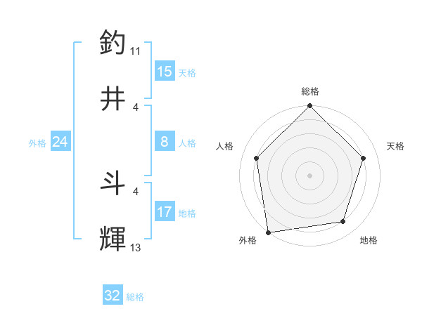 釣井 斗輝さんの総格は32画の5点!