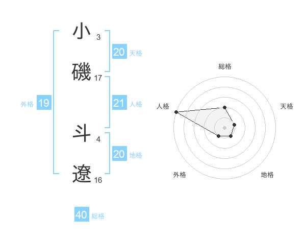 小磯 斗遼さんを姓名の画数から五運を鑑定