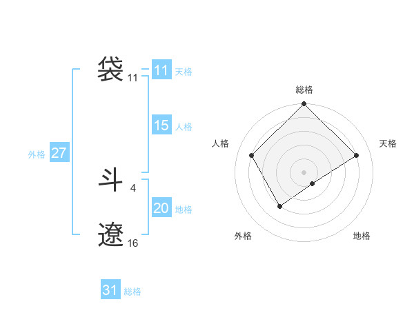 袋 斗遼さんの地格は20画の1点!