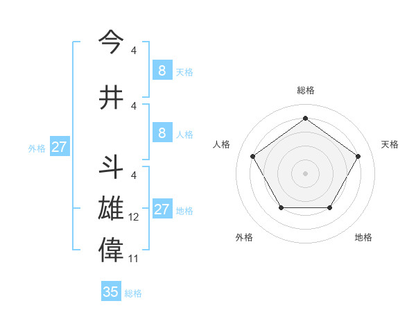 今井 斗雄偉さんの総格は35画の4点