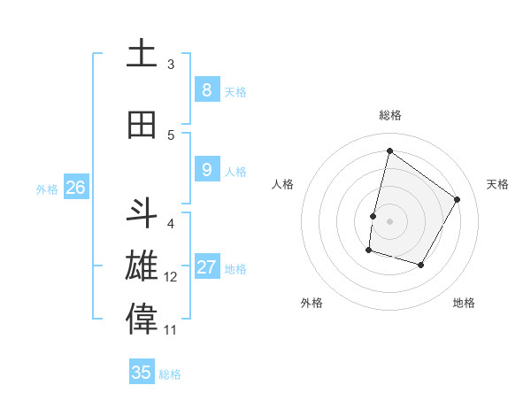 土田 斗雄偉さんを姓名の画数から五運を鑑定