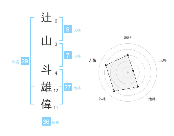 辻山 斗雄偉さんを姓名の画数から五運を鑑定