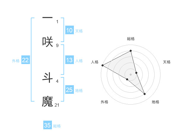 一咲 斗魔さんの総格は35画の4点!