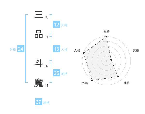 三品 斗魔さんを姓名の画数から五運を鑑定