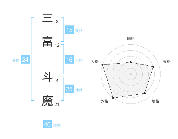 三富 斗魔さんを姓名の画数から五運を鑑定