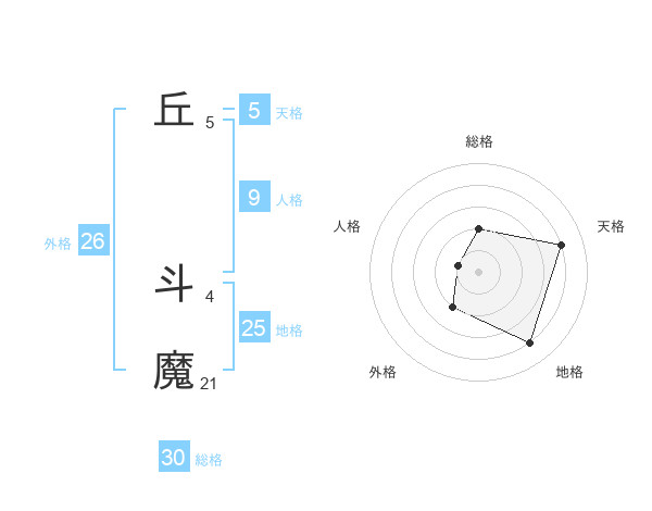 丘 斗魔さんの総格は30画の2点!