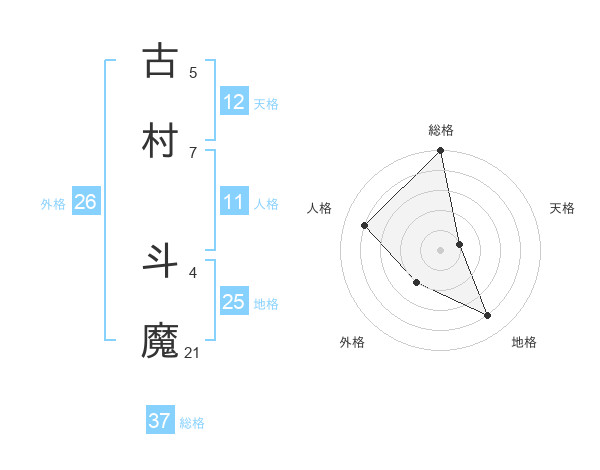 古村 斗魔さんの総格は37画の5点!