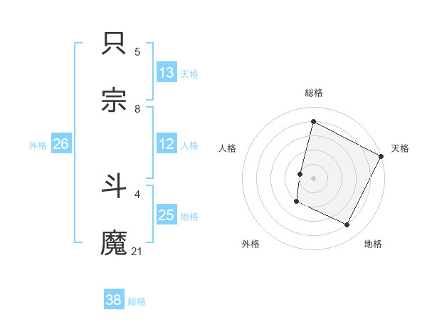只宗 斗魔さんの総格は38画の4点!