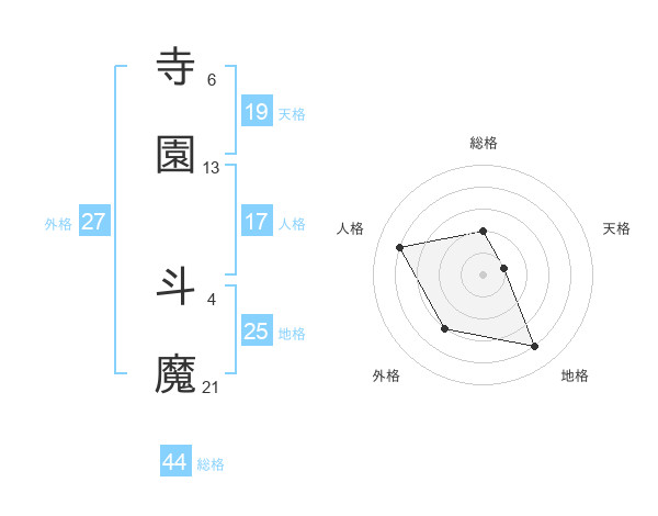 寺園 斗魔さんの総格は44画の2点!