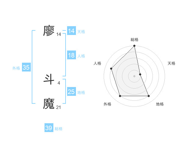 廖 斗魔さんの総格は39画の5点!