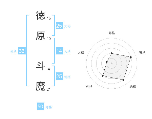 徳原 斗魔さんの総格は50画の2点!