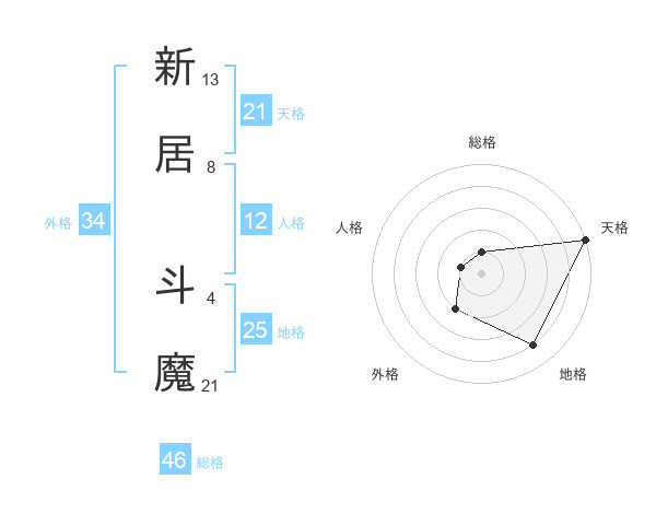 新居 斗魔さんを姓名の画数から五運を鑑定