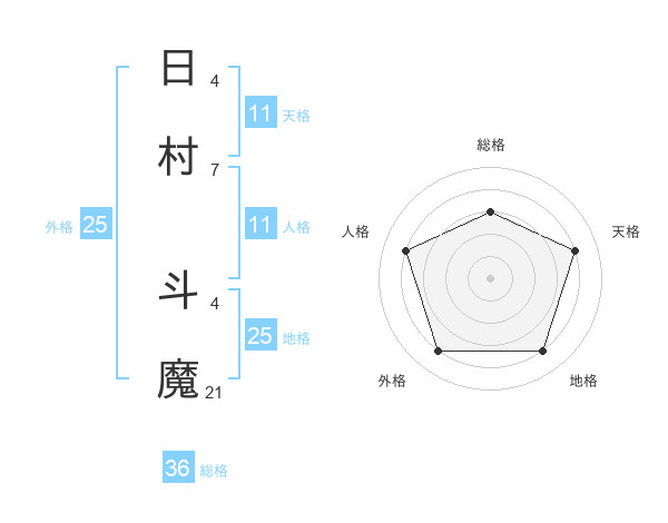 日村 斗魔さんを姓名の画数から五運を鑑定