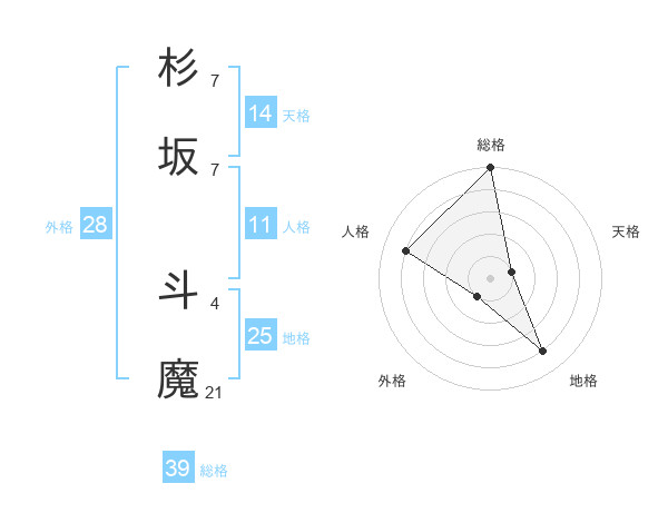 杉坂 斗魔さんの総格は39画の5点!