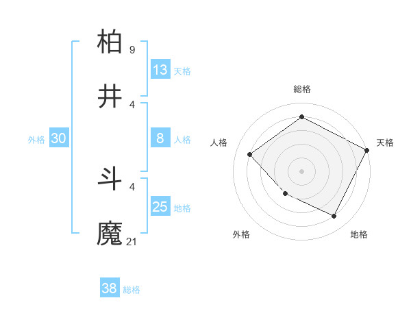 柏井 斗魔さんの総格は38画の4点!