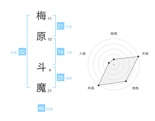 梅原 斗魔さんの地格は25画の4点!