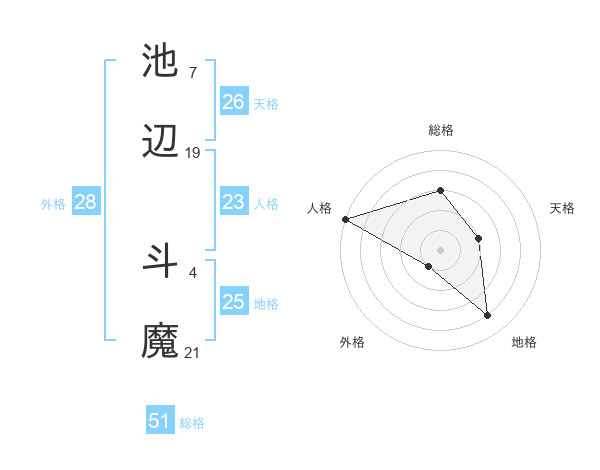 池辺 斗魔さんの総格は51画の3点!