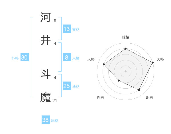 河井 斗魔さんの総格は38画の4点!