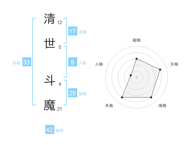 清世 斗魔さんを姓名の画数から五運を鑑定