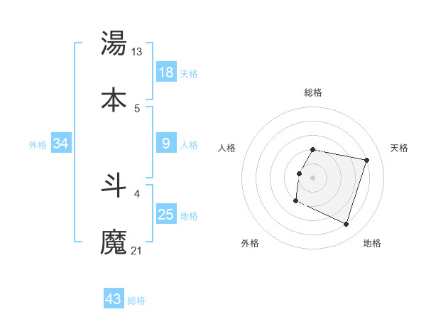 湯本 斗魔さんを姓名の画数から五運を鑑定