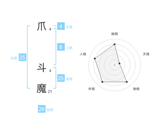 爪 斗魔さんの総格は29画の4点!