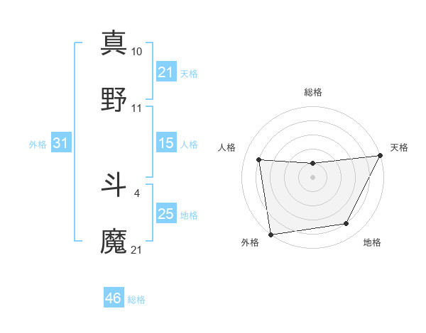 真野 斗魔さんの総格は46画の1点!