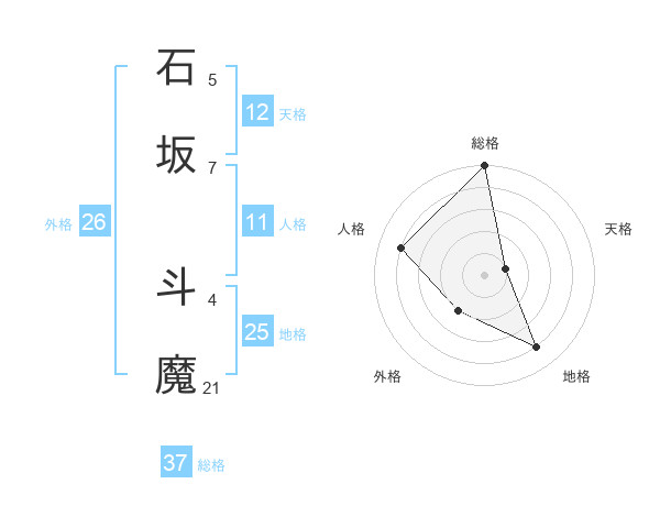石坂 斗魔さんの総格は37画の5点!