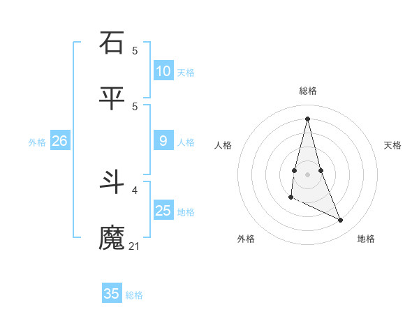 石平 斗魔さんを姓名の画数から五運を鑑定