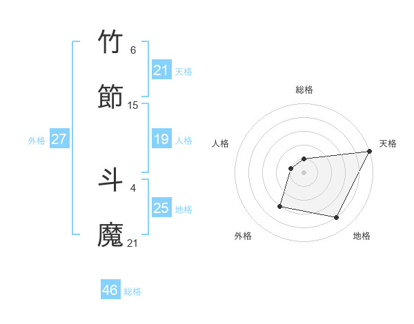 竹節 斗魔さんを姓名の画数から五運を鑑定