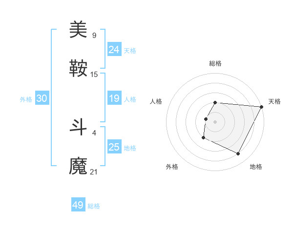 美鞍 斗魔さんの総格は49画の2点!