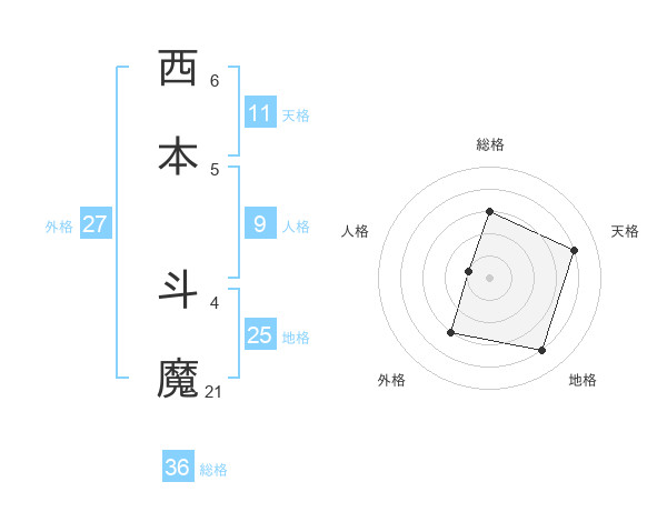 西本 斗魔さんを姓名の画数から五運を鑑定