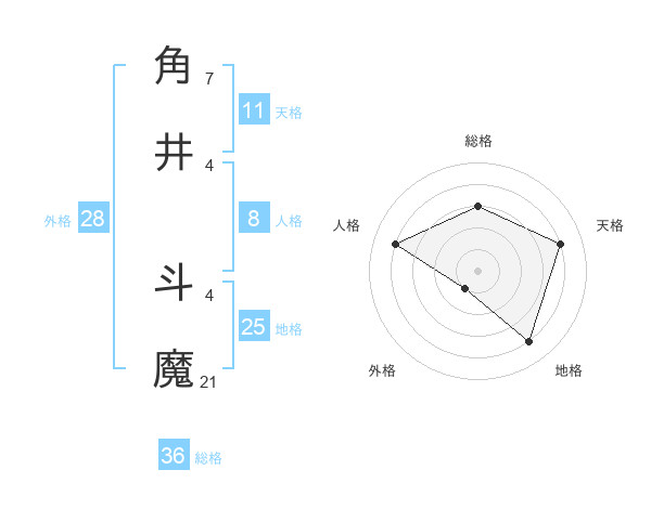 角井 斗魔さんの地格は25画の4点!