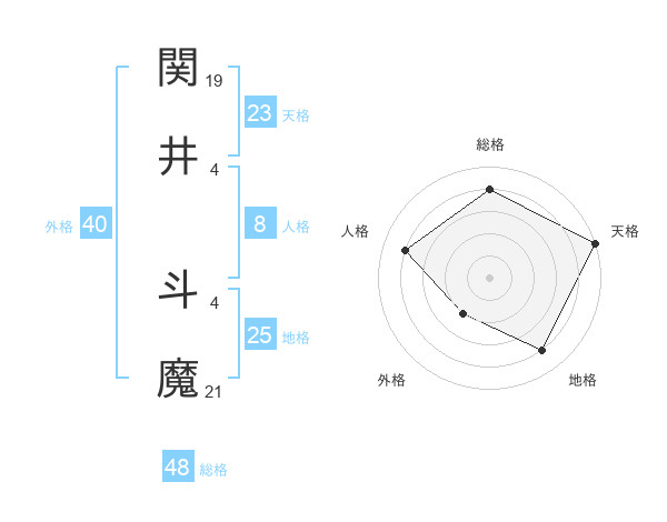 関井 斗魔さんを姓名の画数から五運を鑑定