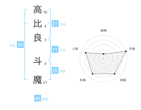 高比良 斗魔さんを姓名の画数から五運を鑑定