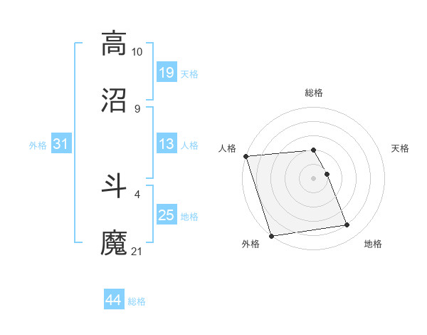 高沼 斗魔さんを姓名の画数から五運を鑑定