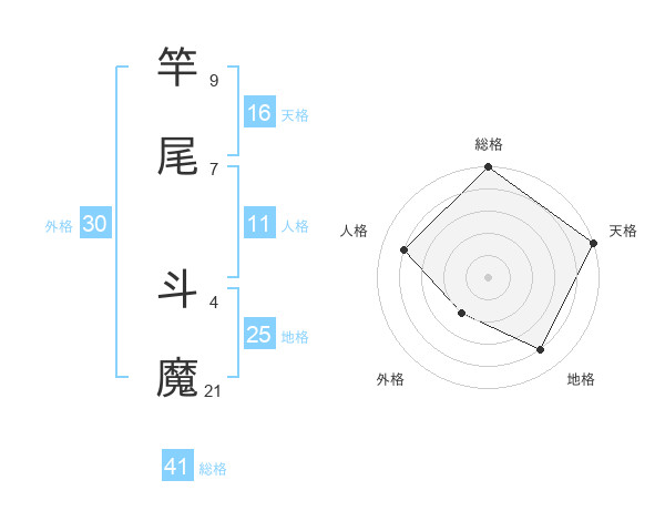 竿尾 斗魔さんを姓名の画数から五運を鑑定