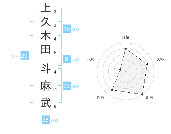 上久木田 斗麻武さんの総格は38画の4点