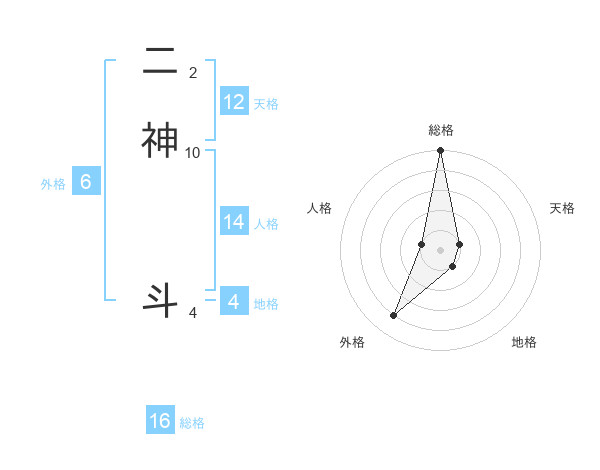 二神 斗さんの総格は16画の5点!