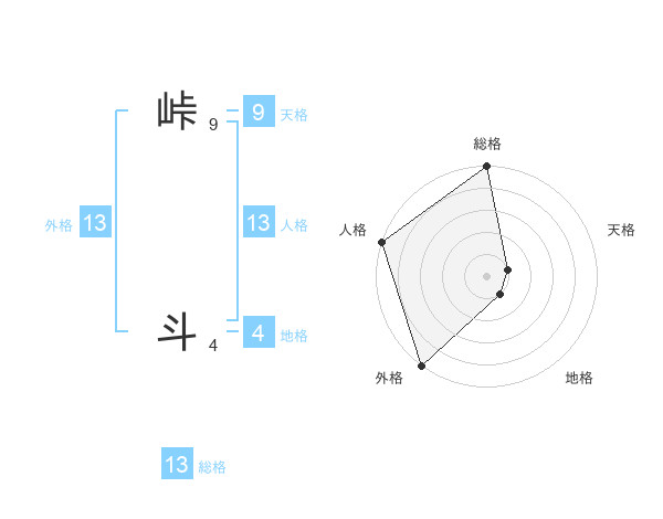 峠 斗さんの外格は13画の5点!