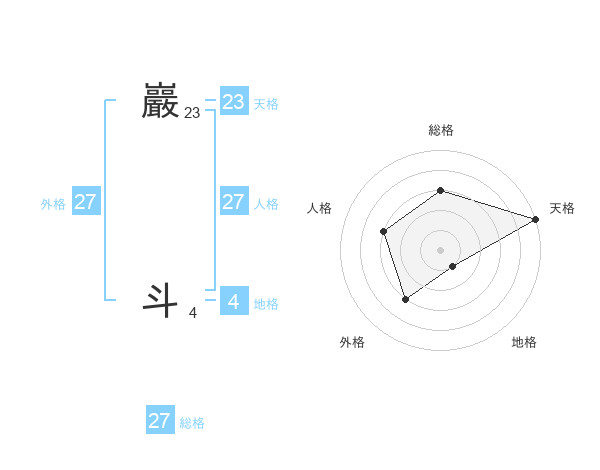 巖 斗さんの総格は27画の3点!