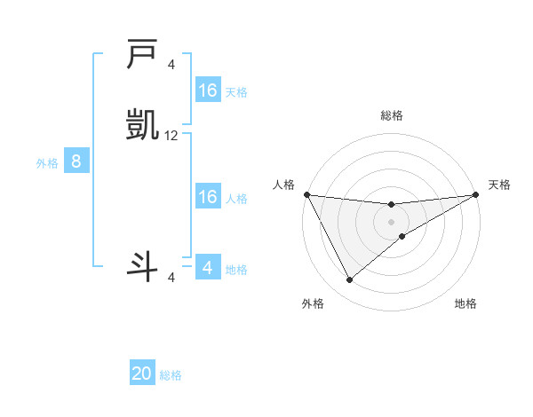 戸凱 斗さんの総格は20画の1点!