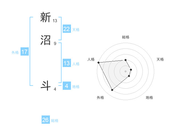 新沼 斗さんの総格は26画の2点!