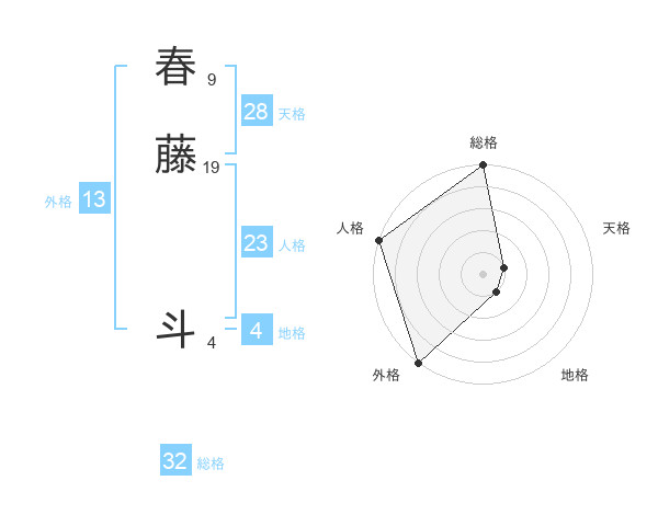 春藤 斗さんの外格は13画の5点!