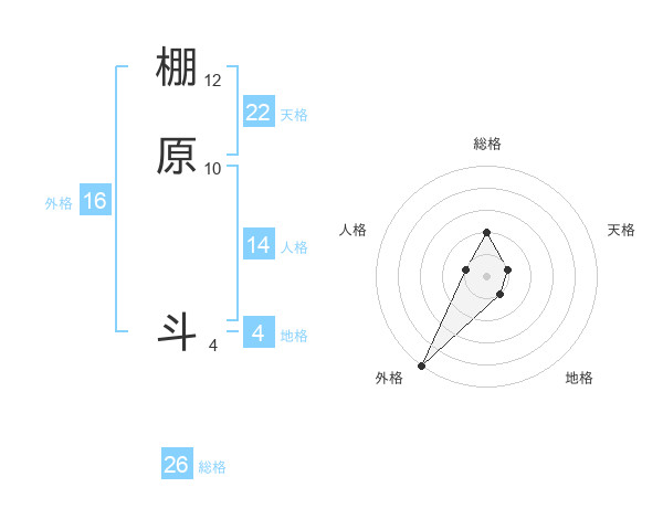 棚原 斗さんの総格は26画の2点!