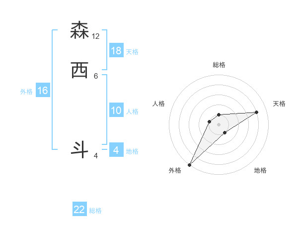森西 斗さんの天格は18画の4点!