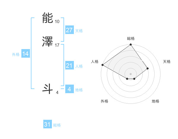 能澤 斗さんの総格は31画の5点!