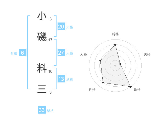 小磯 料三さんの総格は33画の4点!